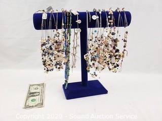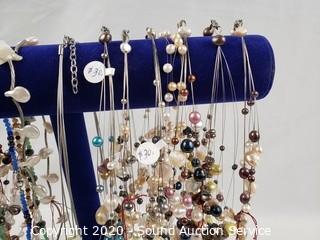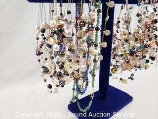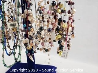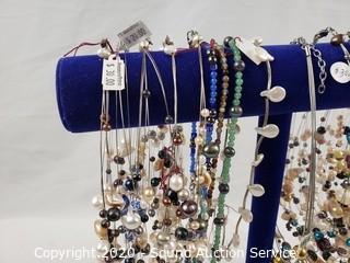 Lot #0060: Pearl & Stone Beaded Necklaces w/Display
