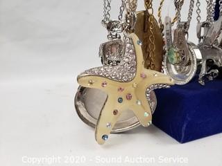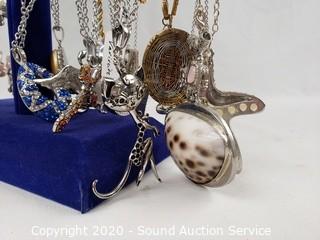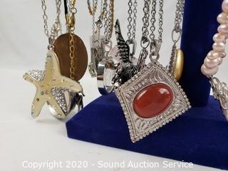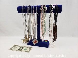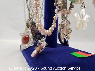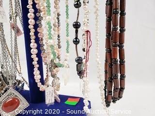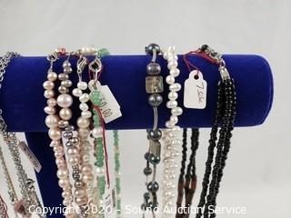 Lot #0061: Pearl, Stone & Rhinestone Necklaces w/Display