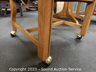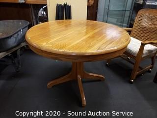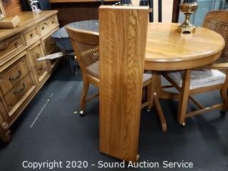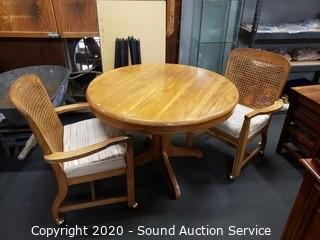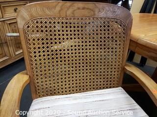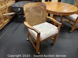 Lot #0270: Round Oak Dining Table w/2 Rolling Cane Back Chair