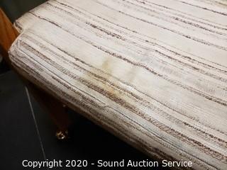 Lot Details: 29" x 42" diameter with 11.5" leaf. Chairs have padded seats, some stains, have an odor - need cleaned.