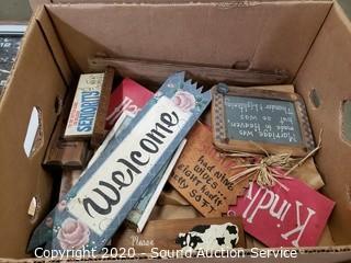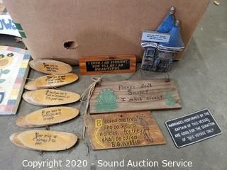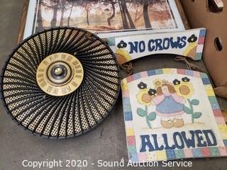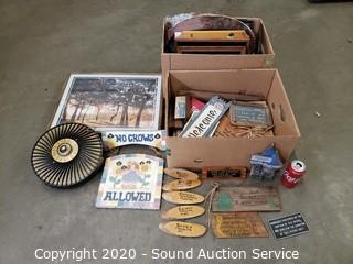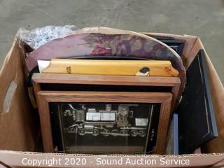 Lot #0398: Vtg Toshiba Radio, Clock, Picture Frames & Signs