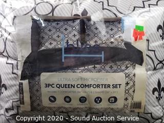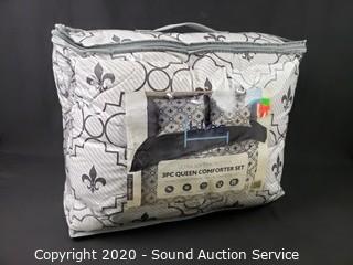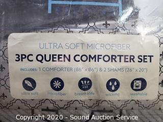 Lot #0052: 3pc Microfiber Queen Comforter Set