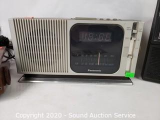 Lot Details: 3 are working. Includes Realistic model 12-656A, Panasonic RC-205 (only the clock is working), Panasonic RC-6050 and Sony AM/FM/Stereo/Cassette CF-550 (missing the battery cover, antenna is broken).