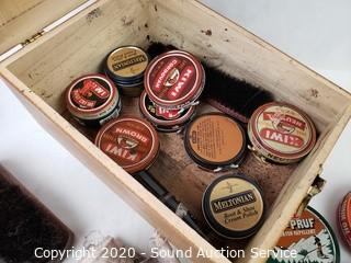 Lot #0118: Kiwi Shoe Shine Box w/Various Supplies