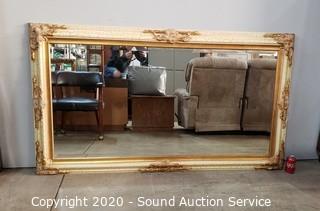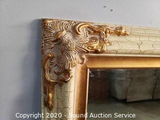 Lot #0058: Large Gold & Ivory Beveled Wall Mirror