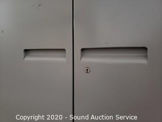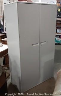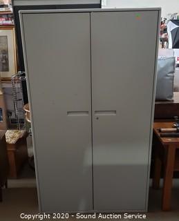 Lot Details: Locked close, NO key. 63" H x 36" W x 18" D. Has a scrape on one side, refer to photos for condition.