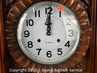 Lot #0143: Zenon Carved Wood 31 Day Pendulum Clock