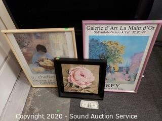 Lot Details: Includes poster by Frey 18" x 26", y. cheffer-delouis poster 24" x 18" and 15" x 15" flower artwork.