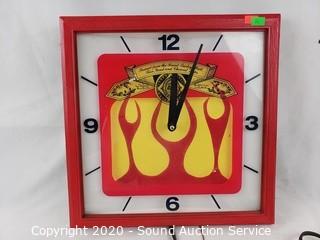 Lot Details: Clock is 13.5" x 13.5" x 4", light & clock works. 22" x 17" sign.