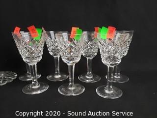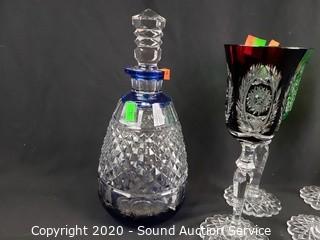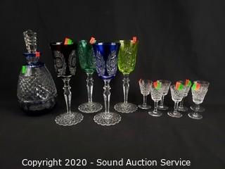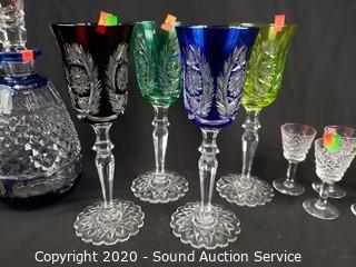 Lot #0034: Cut Crystal Decanter Wine Glasses & Cordial