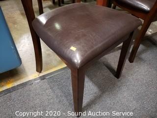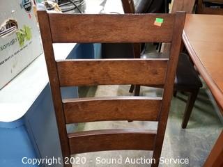 Lot Details: Padded ladder back chairs, solid wood construction. 30" H x 51" x 35".