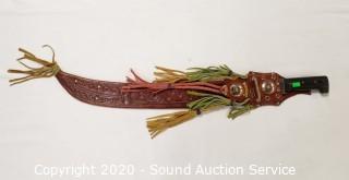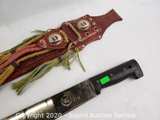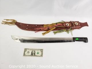 Lot #0142: Machete w/Handcrafted Leather Sheathe