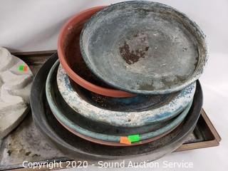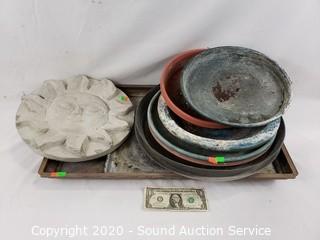 Lot #0260: Planter Drip Trays & Concrete Sun Decor