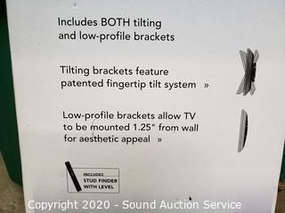 Lot Details: Includes both low profile and tilting brackets for flat panel TVs 32" to 60". In original box. Appears complete. Model SXDP3-B1.