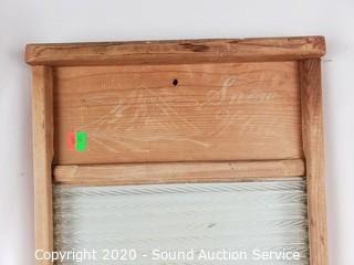Lot Details: Pot is not working, comes with power cord and stirring lid, 5" x 8". Washboard is a Snow White, 12.5" x 24".