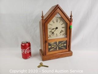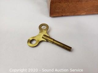 Lot Details: Comes with key. Appears to be working, chimes every half hour. 14.5" H x 8.5" W x 4.5" D.