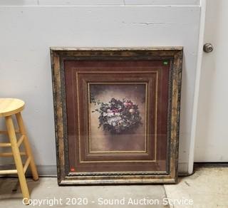 Lot Details: Titled "Fruitful Season". Professionally framed, matted with glass. 38" x 34".