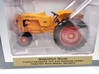 Lot Details: Both in original boxes. Highly detailed, 1:16 scale Minneapolis Moline M-M 450 Gas Narrow Front tractor & American Muscle car.