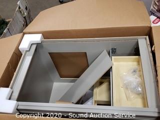 Lot Details: 34.5" H x 36" W x 21" D. Like new with hardware, in original box.