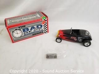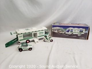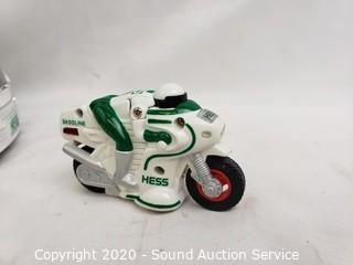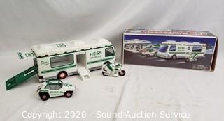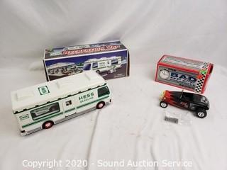 Lot Details: Coin bank is 1/25 scale, Bad Boys of Bonneville series. Recreational van is Hess Gasoline. Both are in original packaging.