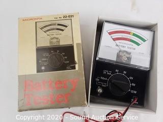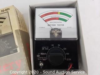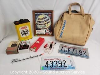 Lot Details: Comes with a DuPont brake fluid canister (empty), Washington State license plates, Micronta battery tester and vintage Honda car part. Ad is 12" x 10.5".