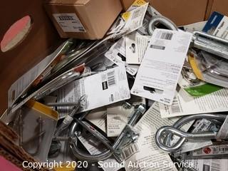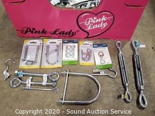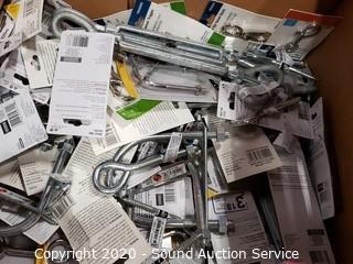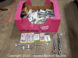Lot Details: Includes S-hooks, lag screw bolts, pullies, U-bolts, double bolt maps, hook eye turnbuckles, lag hooks, string snap links and more.
