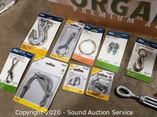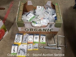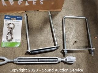 Lot Details: Includes cleats, U-bolts, eye bolts, double clevises links, spring links, S-hooks, round swivel bolt snaps, turnbuckles and more.