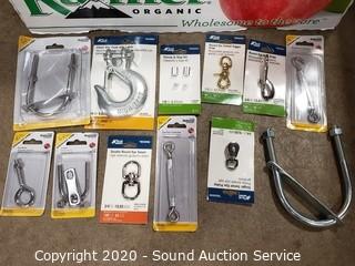 Lot Details: Includes wall mount pullies, clevises slip hooks with latch, ferrule stop kits, lag hooks, quick links, cleats and more.