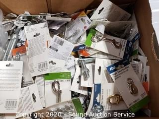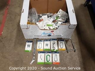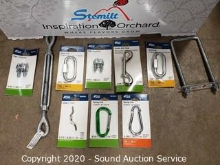 Lot Details: Includes lag hooks, cleats, round eye bolt snaps, quick links, double bolt snaps, eye bolts, round eye swivel tie straps, spring links, pullies, clips, U-bolts, turnbuckles, ferrule stop kits, lag eye bolts and more.