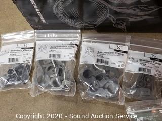 Lot Details: Includes J-hook hangers, 2-hole pipe straps, suspension clamps. All are 1/2" and 3/4".