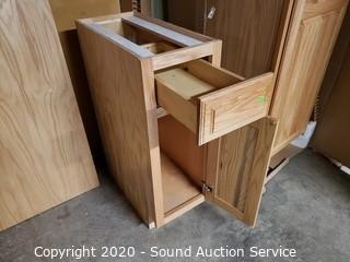 Lot Details: Includes single drawer with lower cabinet 34.5" x 12" x 24", narrow pantry cabinet 84" x 21" x 24" and 2 refrigerator side panels 24" x 84". All are like new, have been removed from boxes for photos. Do not see any damage.
