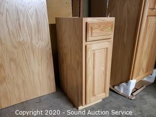 Lot #0273: 2 Solid Oak Base Cabinets w/Fridge Base Panels