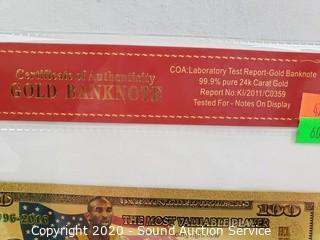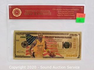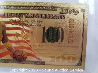 Lot #0060: 99.9% Pure 24k Gold Kobe MVP $100 Banknote