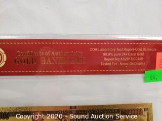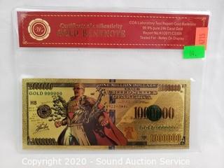 Lot #0064: 99.9% Pure 24k Gold Stan Lee $1Million Banknote