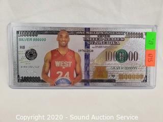 Lot #0067: 99.9% Pure Silver Kobe Bryant $1Million Banknote