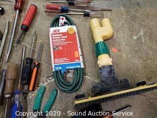 Lot #0170: Assortment of Tools, Batteries & Extension Cord