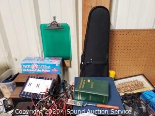 Lot Details: Includes violin case, gutter/vent mesh screen, tools, artwork and more.