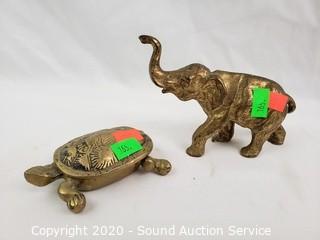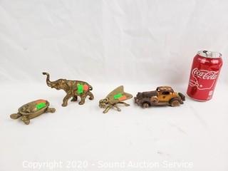 Lot #0165: Brass Trinket Boxes, Elephant Figure & Old Car