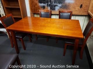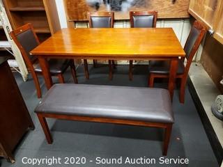 Lot #0052: Cherry Finish Dining Table w/4 Chairs & Bench