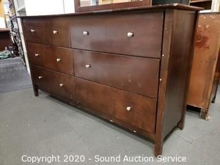 Lot #0054: Dark Finish 6-Drawer Vanity Dresser