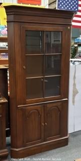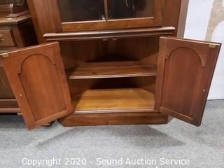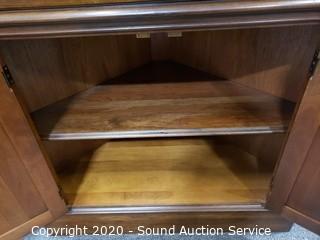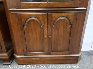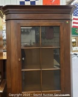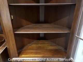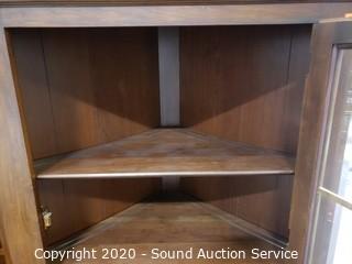 Lot #0004: Dark Finish Oak Lighted Corner Curio Cabinet