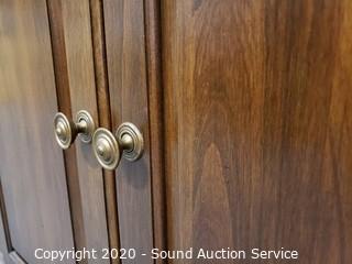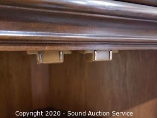 Lot Details: Top tier has 2 shelves with plate grooves, bottom storage has single shelf. Appears to be in excellent condition. 78" H x 36" W x 26" D.