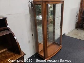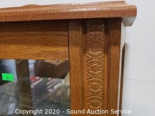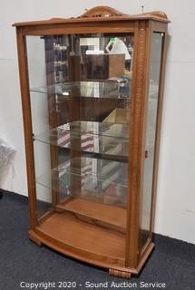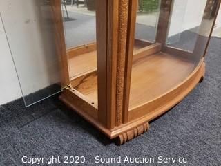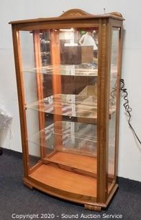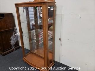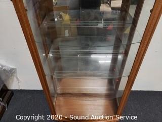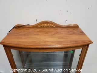 Lot #0037: Oak Mirrored Back Lighted Curio Cabinet