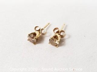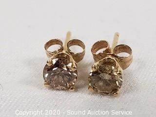 Lot #0185: 14K Gold & Diamond Stud Earrings - Approx: 1 TCW
