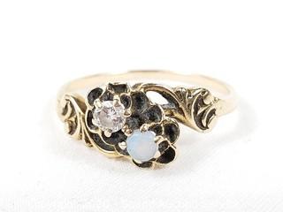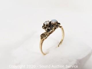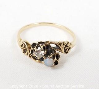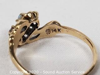 Lot #0168: 14K Gold Ring w/Diamond & Opal Settings S:7.5