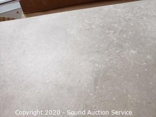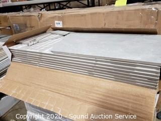 Lot Details: 93.6 sq. ft. total. Each box covers 15.6 sq.ft. Slate gray marble finish. At least one tile is broken.