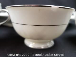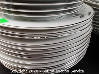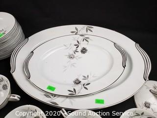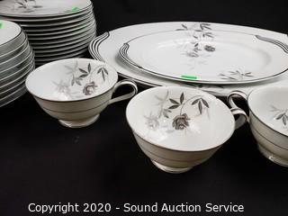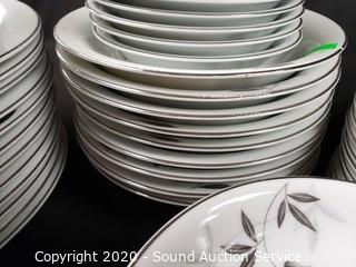 Lot Details: A few pieces have chips. Includes 12" and 16" platters, 4 cups, 9 saucers, 12 snack plates, 10 lunch plates, 12 dinner plates, 9 berry bowls, 9 soup bowls.