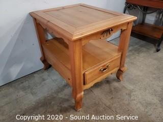 Lot #0039: Bassett Pine 2-Tier Single Drawer Side Table