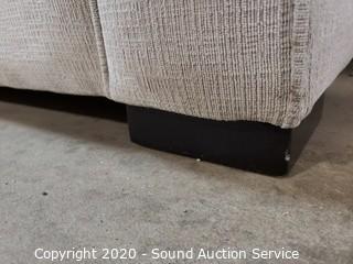 Lot #0004: Nice Beige Fabric Sofa w/Matching Throw Pillows