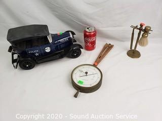 Lot #0217: Police Car Decanter, Shaving Set & Thermometer